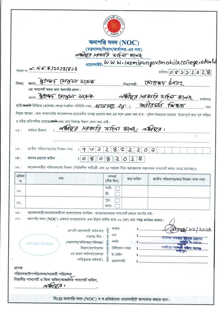 জনাব মুহাম্মদ মোস্তফা ফারুক এর অনাপত্তি সনদ। Leave a Comment / By Laxmipur Govt. Mohila College / November 5, 2024