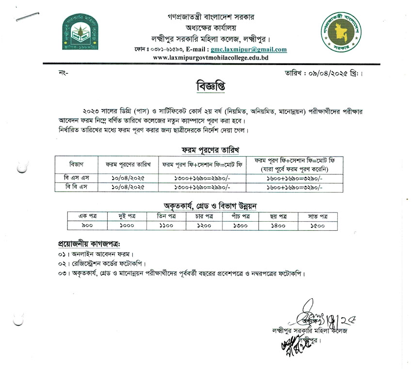ডিগ্রী ২য় বর্ষ ফরম পূরণ ২০২৩ সংক্রান্ত নোটিশ। Leave a Comment / By Laxmipur Govt. Mohila College / April 10, 2025