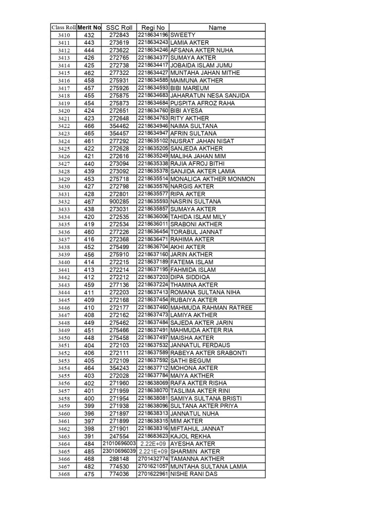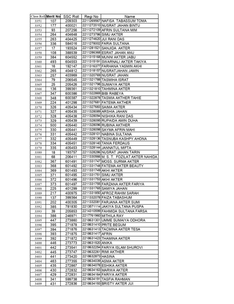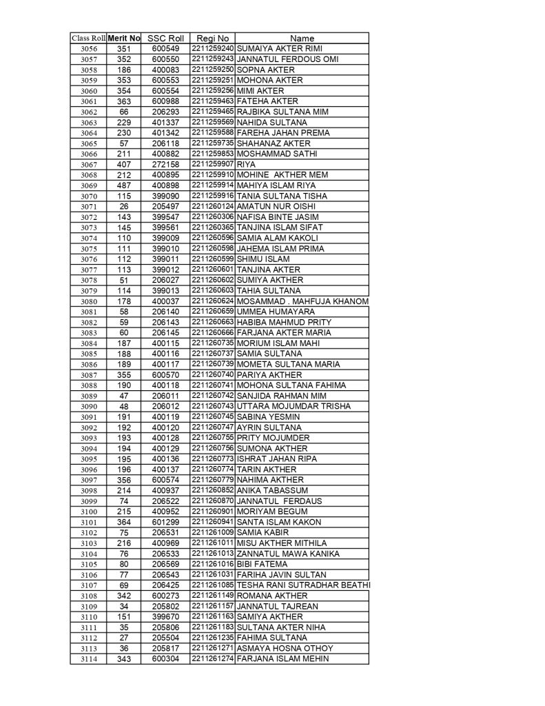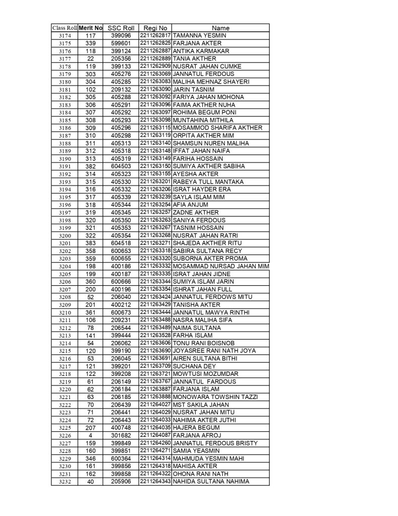 লক্ষ্মীপুর সরকারি মহিলা কলেজে ২০২৫-২০২৬ শিক্ষা বর্ষে একাদশ শ্রেণীতে ভর্তিকৃত মানবিক বিভাগের শিক্ষার্থীদের ক্লাস রোল নম্বর।