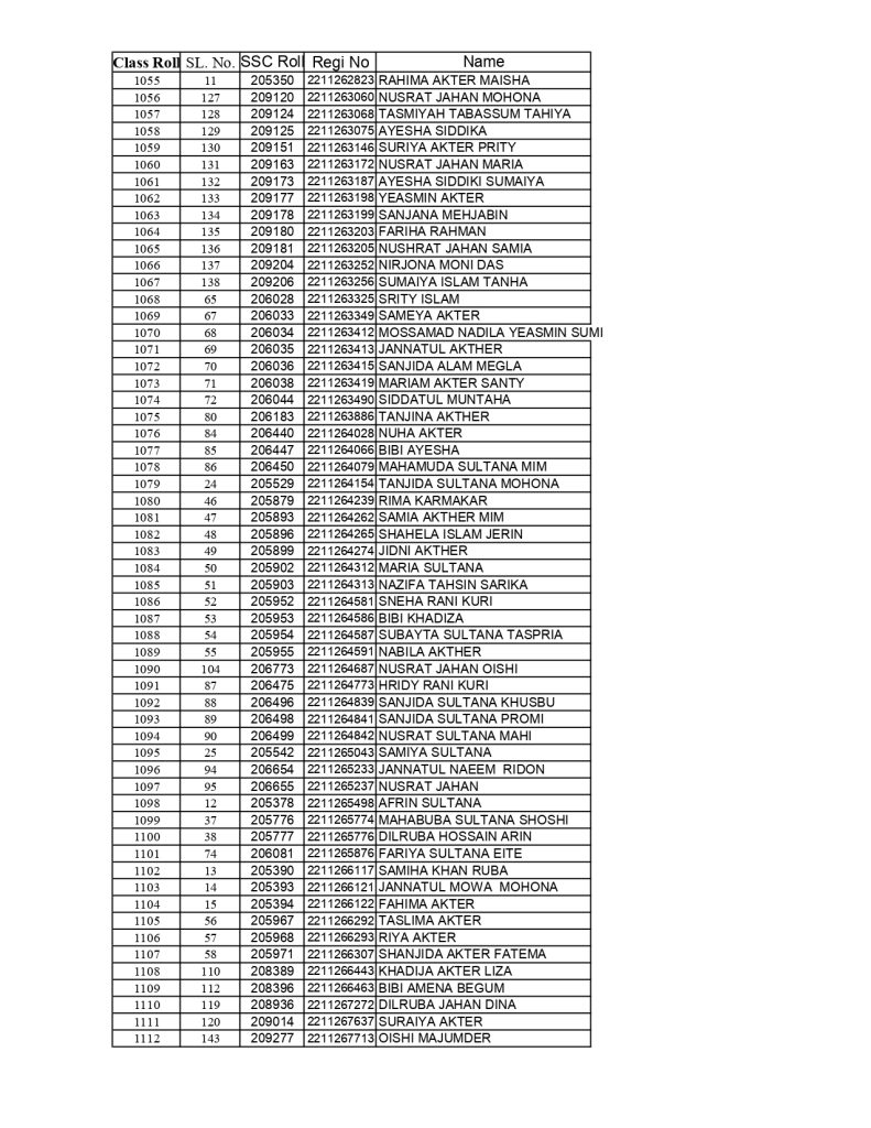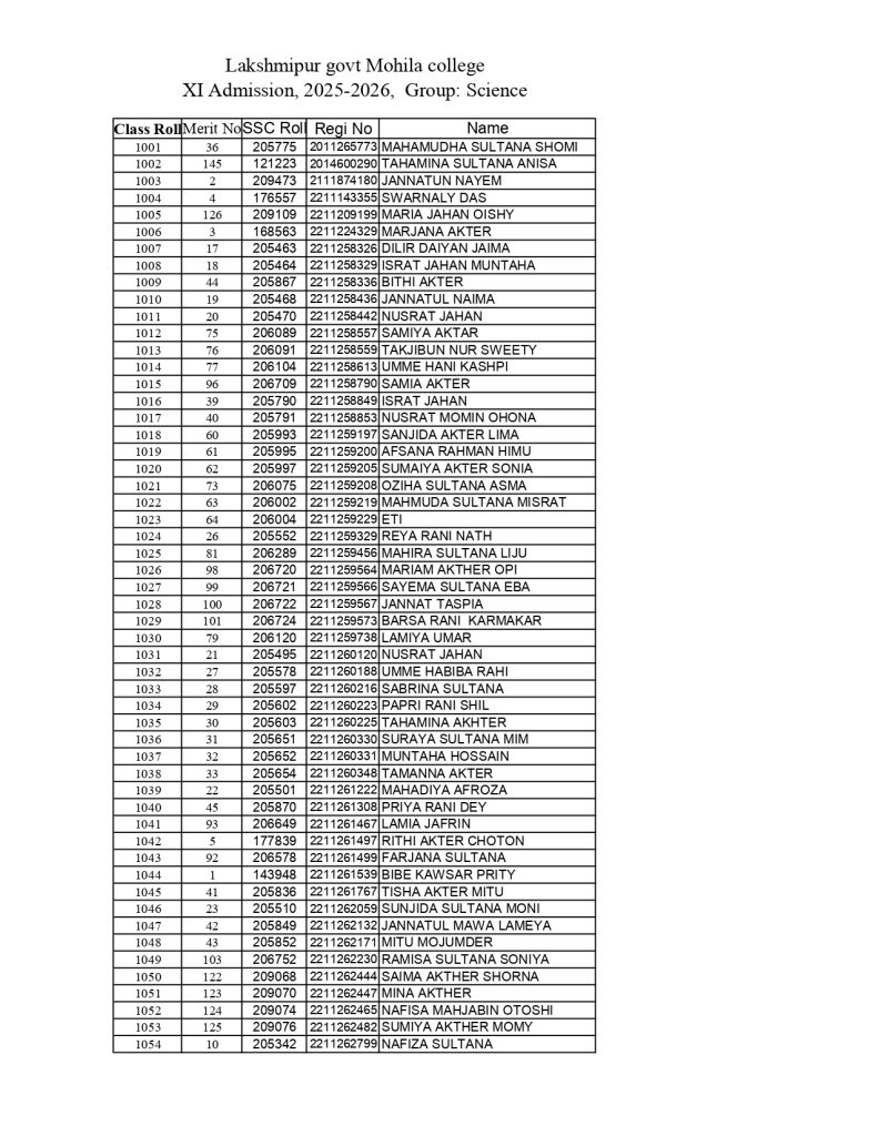 লক্ষ্মীপুর সরকারি মহিলা কলেজে ২০২৫-২০২৬ শিক্ষা বর্ষে একাদশ শ্রেণীতে ভর্তিকৃত বিজ্ঞান বিভাগের শিক্ষার্থীদের ক্লাস রোল নম্বর। Leave a Comment / By Laxmipur Govt. Mohila College / September 14, 2025